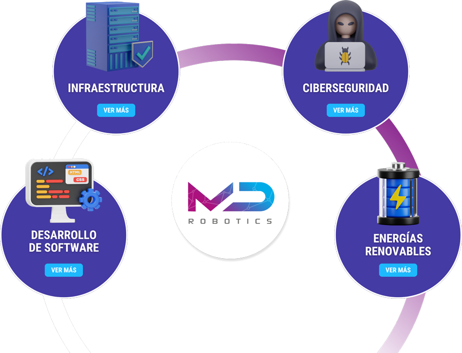 En MDRobotics comprendemos que la tecnología acorta distancias, acelera la transmisión de información, es un factor clave para la globalización del mundo, facilita negocios y protege la privacidad. Por ello, nuestras soluciones se centran en: